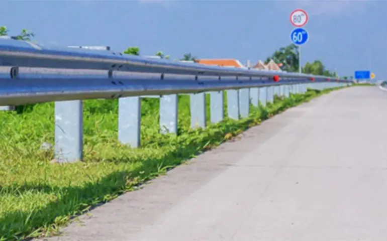 Tiang vertikal penopang utama sistem guardrail yang ditanam kokoh untuk menahan beban benturan kendaraan.